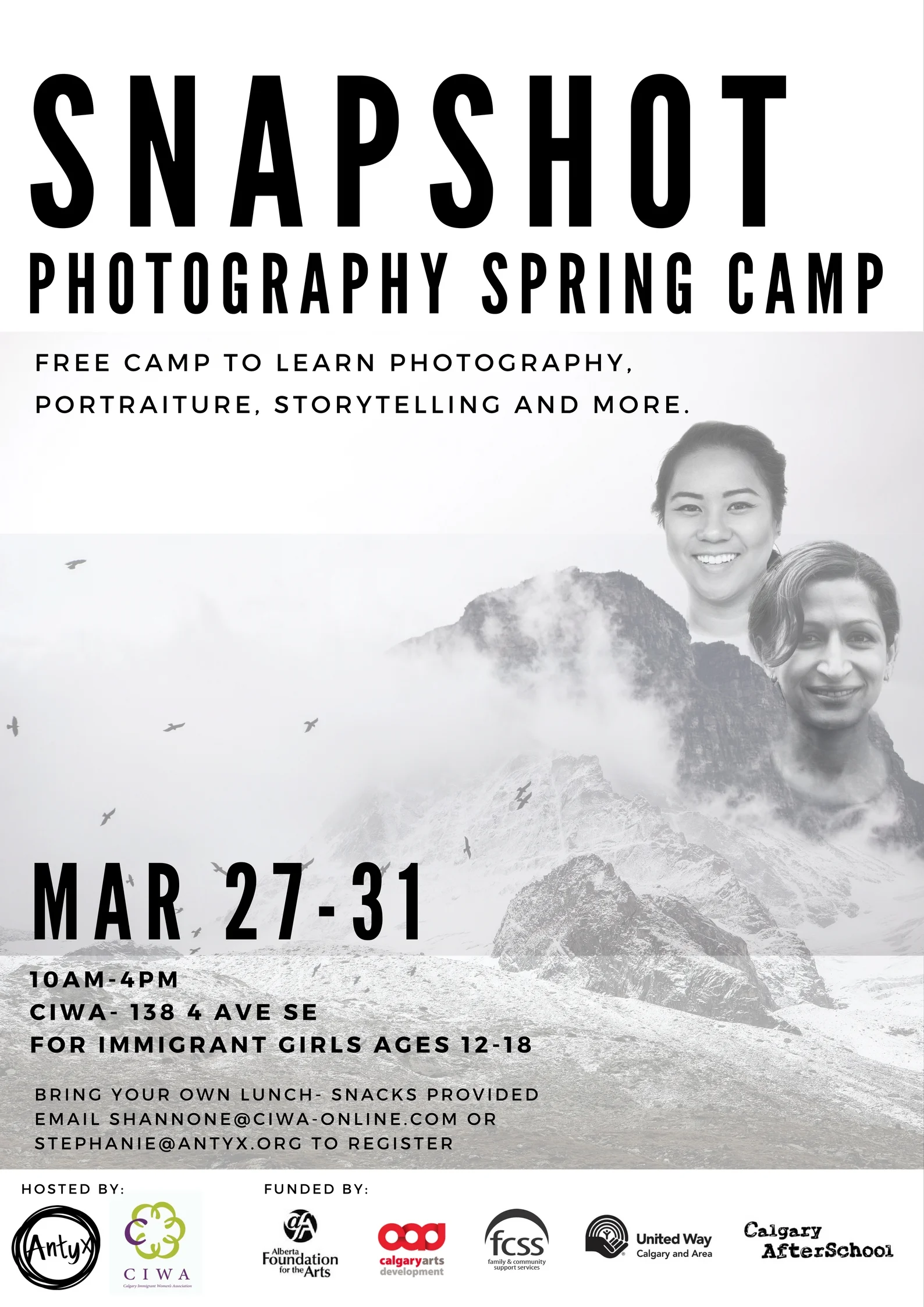 Join Antyx and CIWA for this FREE spring camp to learn photography, portraiture, storytelling and more!