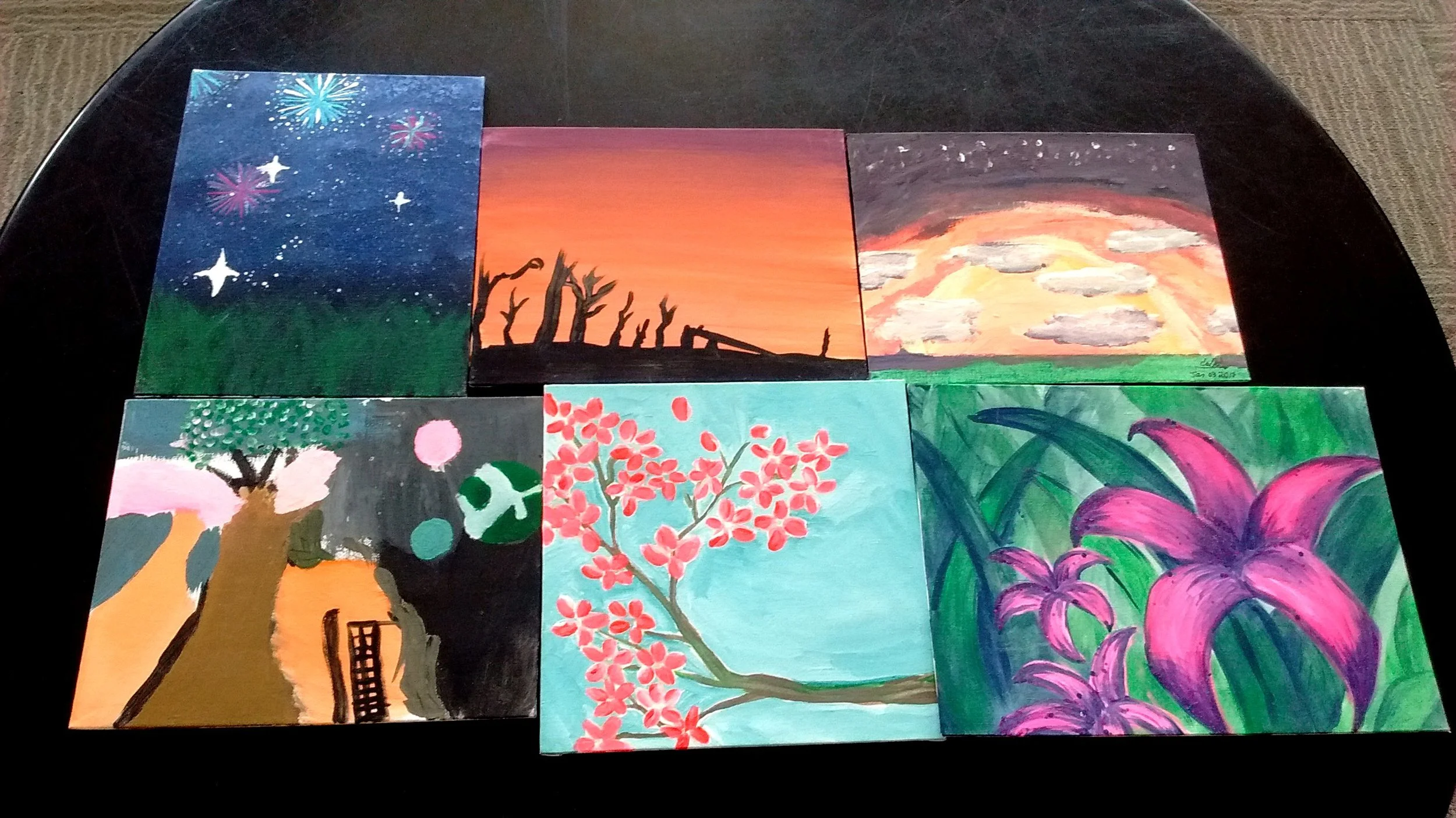 Elder Dakota Eagle Woman spoke of how humanity is starting to wake up and that today's generation holds immense power to create positive change. These paintings done by the youth are a creative reflection of the discussion and of the elder's stories.