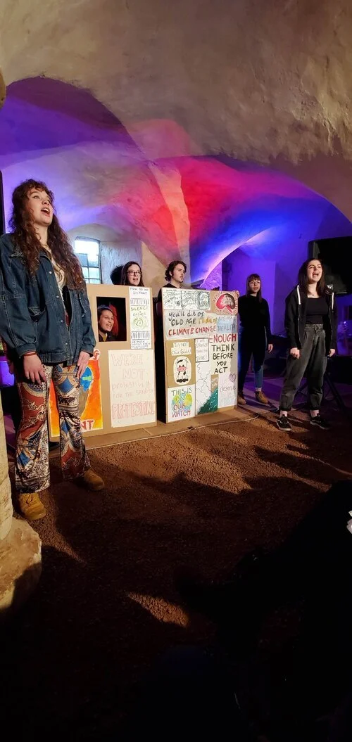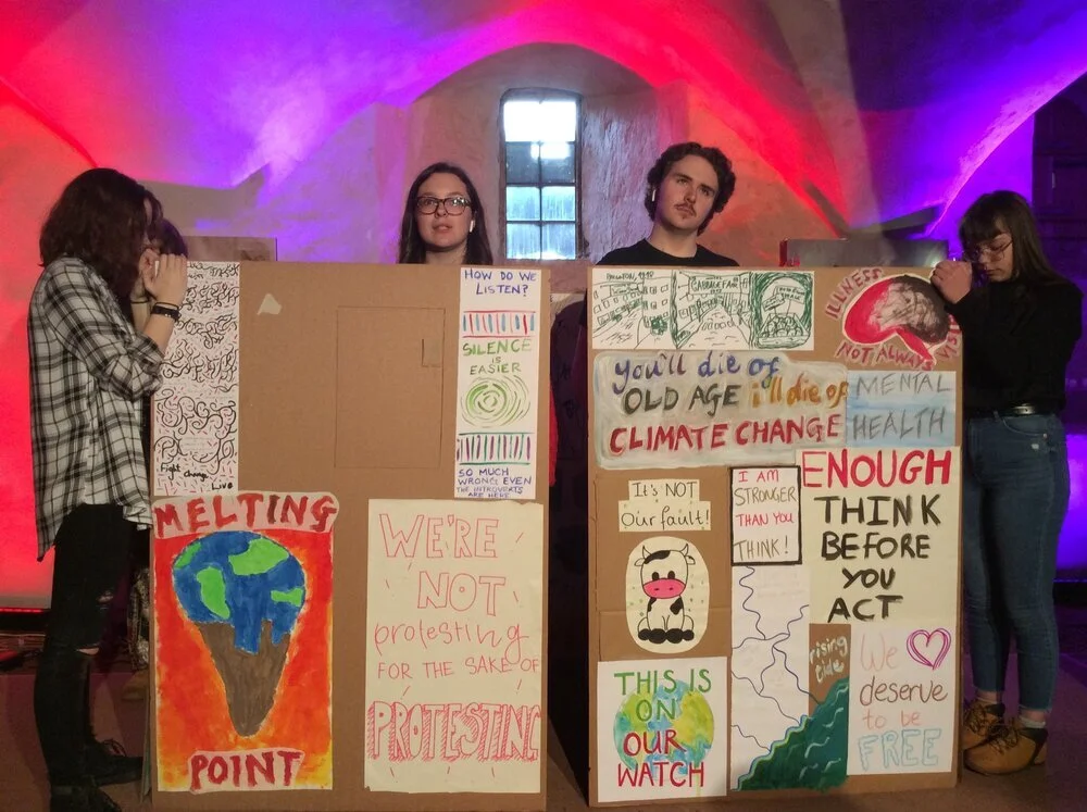 Saturday involved a series of work presented through sketch performances. In addition to the work their youth had been developing, they also invited a series of artists from the community to showcase what they were working on. It was a good chance to hang out with all the youth from the various groups of Doorstep Arts one last time. The Doorstep Youth Theatre group presented their first public run through of their Protest and Rebellion piece, while some of the Doorstep Arts facilitators performed personal pieces they had been working on. We also had the opportunity to facilitate a short visual arts for social change workshop related to the activities of the weekend, inviting people to create #ListenToMe signs as well as mock up designs for a re-imagined world.