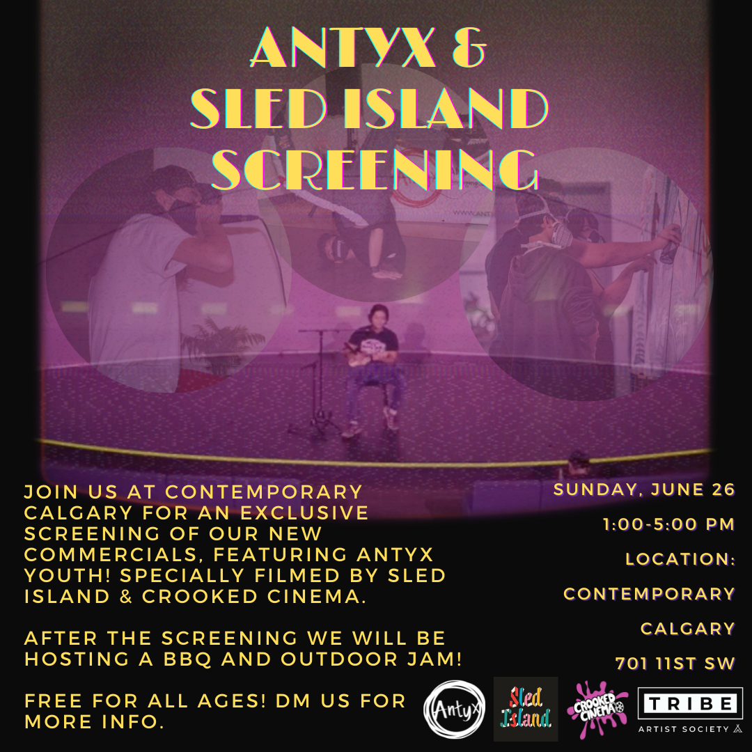We're inviting the community to the Antyx & Sled Island Screening of our new commercials featuring Antyx youth! Learn more about our young artists and their art form! After the screening, we will be hosting a free BBQ and outdoor jam 🎶