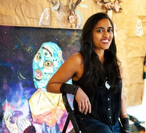 Across a twenty-year practice, Chitra Ganesh has developed an expansive body of work rooted in drawing and painting, which has evolved to encompass animations, wall drawings, collages, computer generated imagery, video, and sculpture. Through studies in literature, semiotics, social theory, science fiction, and historical and mythic texts, Ganesh attempts to reconcile representations of femininity, sexuality, and power absent from the artistic and literary canons. She often draws on Hindu and Buddhist iconography and South Asian forms such as Kalighat and Madhubani, and is currently negotiating her relationship to these images with the rise of right wing fundamentalism in India.